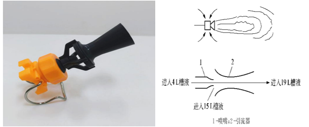 喷嘴是一种用于控制流体流动方向和速度的装置,广泛应用于工业、农业、汽车等多个领域。电泳槽中常常使用喷嘴实现槽液循环搅拌,确保涂料均匀分散,防止颜料沉淀至槽底而降低固体份,同时避免颜料沉降在被涂物上影响表面质量。常规喷嘴在压力损失、流量控制及混合效率上存在局限,为达到更好的循环效果,在循环搅拌管上安装引流喷嘴,利用文丘里原理,通过引流器喷出槽液量扩大3-4倍。 ✦工作原理:文丘里喷嘴利用了文丘里效应。当槽液主循环泵提供的高压液体流经喷嘴的狭窄喉部时,流速急剧增加,根据伯努利原理,这会在此处产生一个低压区域。 ✦“吸力”的产生:这个低压区就像一个真空吸力点,会通过喷嘴侧后方或侧面的开口(吸入口)大量吸入电泳槽底部或周围的槽液。 ✦混合与喷射:被吸入的槽液与高速流动的主循环液流在喷嘴的扩散段充分混合,然后以较低的速度但更大的流量喷射到电泳槽中。 这样设计的好处: ✦能耗低,效率高:主循环泵只需要推动一部分流体通过狭窄喉部产生高速,就能“撬动”(吸入并带动)数倍于自身流量的槽液一起运动。相比于普通喷嘴,它能用更小的泵功率实现更大体积的槽液循环。 ✦温和且均匀的搅拌:喷射出的流体流速适中,避免了直冲喷嘴对湿膜可能造成的冲击损伤,同时能形成大范围的、无死角的流动,确保槽液成分和温度高度均匀。 . 电泳漆是一种水溶性涂料,其中包含:①树脂:成膜物质,溶于水。②颜料:提供颜色和遮盖力,是不溶于水的固体颗粒。如果槽液静止,这些颜料颗粒会因为重力而逐渐沉降到槽底,导致:①槽液上下成分不均:上部树脂多,颜色浅;下部颜料多,颜色深。②工件涂装不均:不同位置的工件,甚至同一工件的不同部位,漆膜颜色和厚度会不一致。③严重时:沉淀的颜料会板结在槽底,堵塞管道,造成巨大损失。 文丘里喷嘴通过持续、高效地搅动整个槽液,让颜料颗粒始终处于均匀悬浮状态,从根本上避免了沉淀的发生,保证了电泳涂装的一致性和稳定性。 文丘里喷嘴的几何形状是其性能的决定因素,为三段式结构: 收敛段(进口段):形状:通常为锥形或平滑的圆弧形。角度:收敛角是关键参数,一般在 10° ~ 30° 之间。角度过小会导致喷嘴过长,角度过大会产生流动分离,增加能量损失。20° ~ 25° 是常见选择。作用:将流体平稳加速,将压力能转化为动能。 喉部(喉管):形状:一段等直径的直管。长度:喉部长度通常为其直径的 0.8 ~ 1.5 倍。太短则流动不稳定,太长则摩擦损失过大。作用:稳定高速流动,并在其末端形成稳定的低压区,这是卷吸现象发生的位置。 扩散段(出口段):形状:渐扩的锥形。角度:扩散角尤为关键,通常为 5° ~ 8°,最大不宜超过 10°。角度过大会导致流体与壁面分离,产生涡流,造成巨大的压力损失,使文丘里效应失效。作用:将流体的动能逐步恢复为压力能,减少出口动压损失,提高效率。 . 单个喷嘴的性能再好,也需要合理的布局、安装位置与方向,才能发挥整体效果。通常安装在槽体底部两侧的管道或堰槽下方,喷嘴方向略向上倾斜或水平指向槽体中心。布局原则是使喷出的液流在槽内形成一个整体的大循环涡流,避免存在搅拌死区。 间距:喷嘴间距需根据其有效射流距离来确定,通常为 1 ~ 2.5 米。确保相邻喷嘴的流场能够相互衔接,覆盖整个槽体横截面。 与循环泵的匹配:循环泵的流量和压力必须与所有喷嘴的总流量和总压力损失(包括管道、过滤器等)相匹配。通常在泵的出口主管上会安装压力表和流量计,用于监控系统运行状态。 . . 文丘里喷嘴的维护与保养主要就是倒槽时观察角度是否正常,是否有破损、脱落、堵塞等异常情况,发现问题及时处理。因此,文丘里喷嘴虽然结构简单,但却是现代电泳涂装系统中不可或缺的“心脏”部件之一,直接关系到涂装质量的优劣和生产运行的稳定性。 .